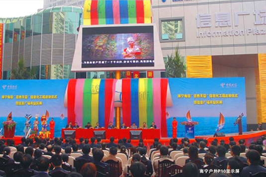德彩光电为南宁信息广场打造了32平方米的PH10mmLED户外显示屏。