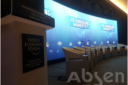 天津·达沃斯论坛会议小间距LED显示屏由深圳市艾比森光电股份有限公司承建。该室内全彩LED显示屏大屏幕系统采用了P2规格,LED显示屏面积30平米,为天津·达沃斯论坛会议提供了便利,是室内全彩LED显示屏在室内小间距应用的一个经典工程案例。